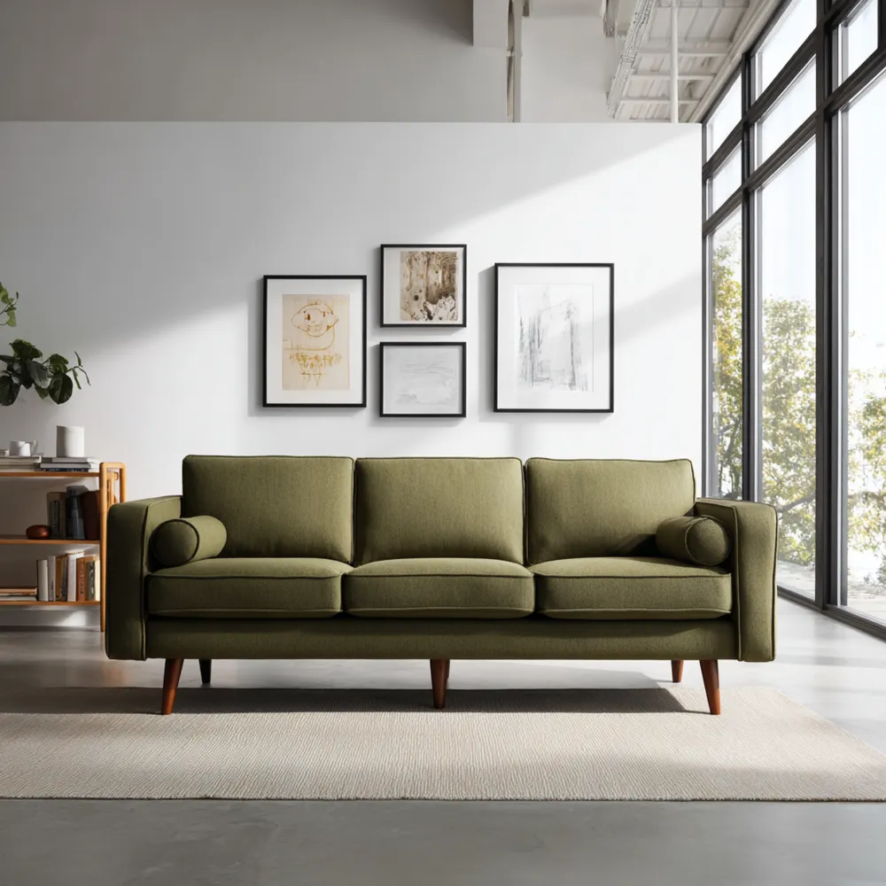 Matériaux et ConceptionFabriqué avec un tissu de haute qualité en Vert Olive, ce canapé offre une durabilité exceptionnelle et un toucher doux. Les pieds en bois ajoutent une touche d'élégance.